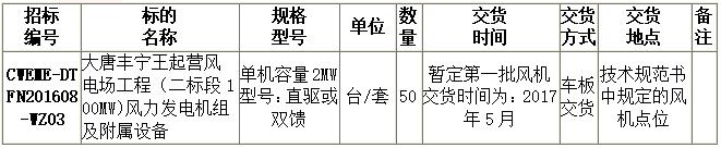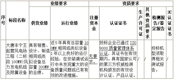 1.2 标的名称:大唐丰宁王起营风电场工程(二标段100MW)风力发电机组及附属设备
