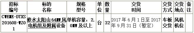 1.7 工程简介:江西大唐国际修水太阳山风电场工程,总装机容量64MW,单机容量2.0MW及以上机组及其附属设备。