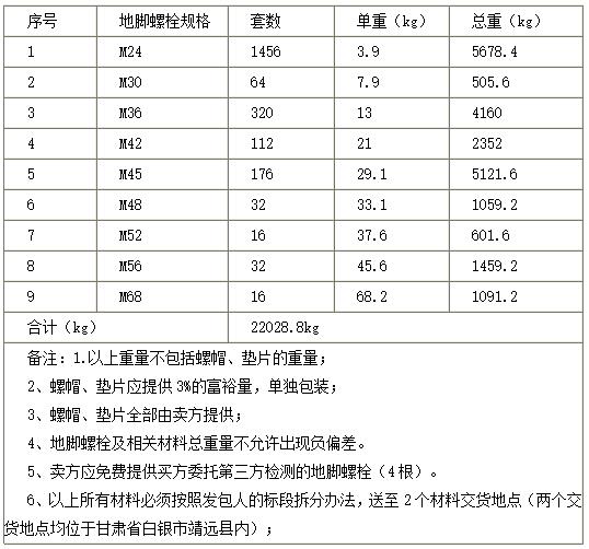 地脚螺栓交货日期:2016年10月1日-2016年10月5日