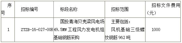 中投咨询有限公司受招标人委托,对国投青海贝壳梁风电场49.5MW工程风力发电机组基础钢筋采购项目进行公开招标,本次招标采用公开招标、资格后审的方式。