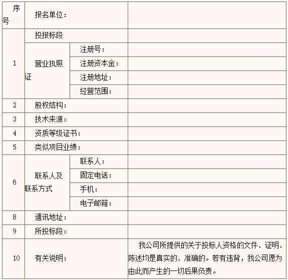 注:所有的报名资料(包括资质文件扫描件)必须制作成壹个可编辑版word文件;报名文件电子版须在中国华能电子商务平台电子招投标模块内提交。