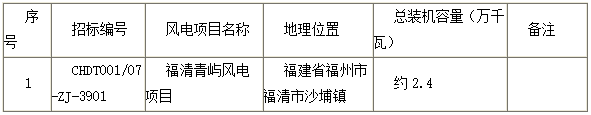 华电招标有限公司受华电福新能源股份有限公司委托,作为其招标代理机构,对华电福新福清青屿风电项目风电机组招标进行国内公开招标,现公告如下: