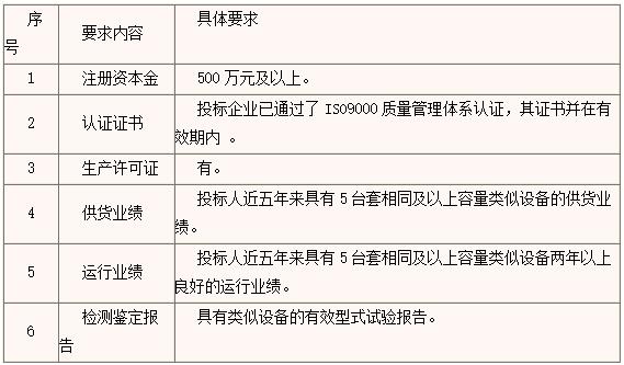 表7.1-1 投标人(制造商)专用资质业绩要求