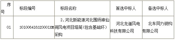 华润电力2016年度第10批次集中招标(新能源-河北围场神仙洞风电塔筒)通过招标评审,结果公示如下: