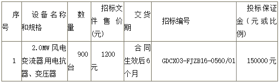 项目名称: 国电龙源电气有限公司2016年9-12月份生产用料框架2.0MW风电变流器用电抗器、变压器【二次挂网】(以下简称“项目”)