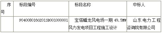 吉电股份宝塔蟠龙风电场一期49.5MW风电项目工程施工设计招标通过招标评审,结果公示如下: