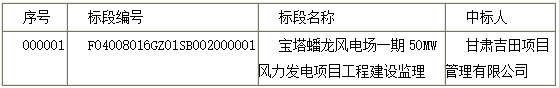 陕西延安宝塔蟠龙风电场一期50MW风力发电项目工程建设监理招标结果公告
