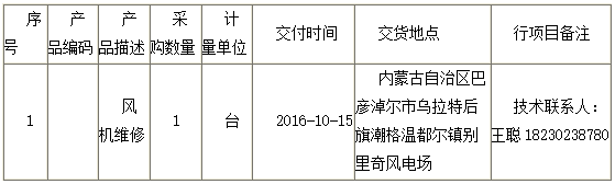 询价名称:大唐乌拉特后旗风电有限公司别里奇风电场2MW风机维修
