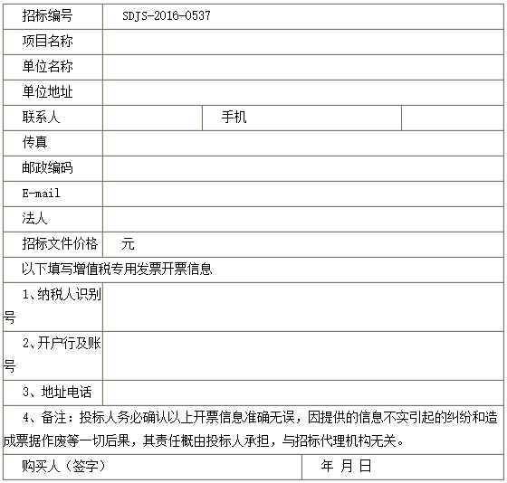 注:投标单位以电汇形式购买招标文件或递交投标保证金(不接受个人汇款),电汇单必须注明“(SDJS-2016-0537)投标保证金”字样,否则,因款项用途不明导致投标无效等后果由投标人自行承担。