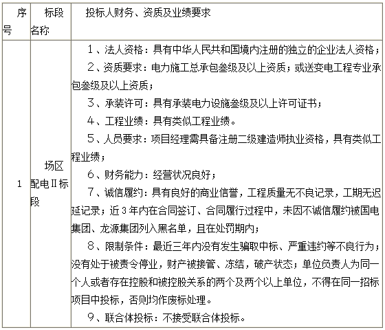 招标范围:场区配电Ⅱ标段