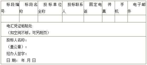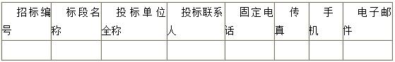 说明:本表中填报的投标人名称须全称且与营业执照上的名称一致。购买招标文件单位、购买招标文件回执确认单”中列明的单位必须一致。