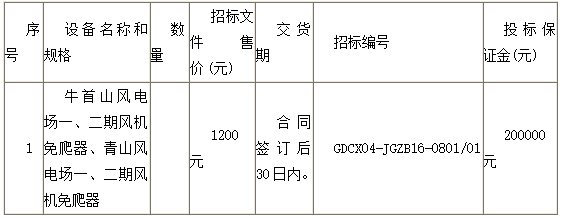 1.4 招标范围为牛首山及青山等两个风场132台风机免爬器采购、安装,并将原有两个风场风机助爬器拆除并运输至各个风场指定地点等。具体内容详见招标文件第二卷的有关规定。