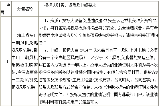 1.4 招标范围为国电电力山西新能源开发有限公司右玉高家堡等三个风电场共132台风机免爬器的采购、安装调试,并将原有风电场风机助爬器拆除并运输至各个风电场指定地点等。具体内容详见招标文件第二卷的有关规定。