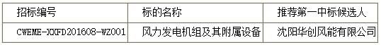2016年9月栖霞庄园风电场工程风力发电机组及附属设备中标结果公示