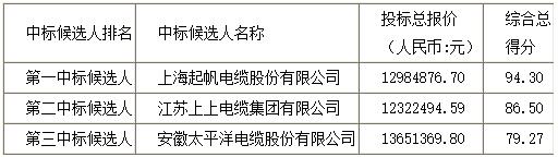 中航新能源湛江雷州调风风电场项目电缆、直埋光缆及站用配电屏等设备采购项目(招标编号:ZTC-G16H-112)的招标评标工作已经完成,评标委员会向招标人推荐了本次招标的中标候选人名单。按规定现将中标候选人情况予以公示,(公示时间从2016年10月14日00时00分至2016年10月16日23 时59分止),具体如下: