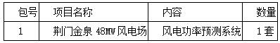 1. 中金招标有限责任公司(以下简称“招标机构”)受浩泰新能源装备有限公司(以下简称“招标人”)委托,就协合新能源集团有限公司(中国风电集团)荆门金泉风电场项目风电功率预测系统采购项目(招标编号: 0773-1640GNOB03104 )所需设备及相关服务进行公开招标采购,现邀请具有独立法人资格的合格投标人参加本次招标。