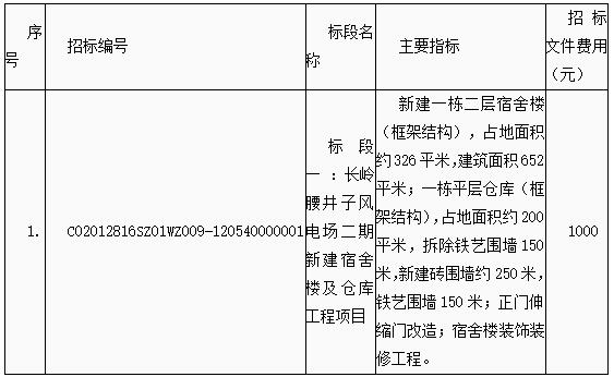 二、本次招标标段情况一览表