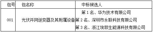 中国神华国际工程有限公司,就国华(开鲁)风电有限公司30MWp光伏发电项目光伏并网逆变器及其附属设备集中采购(重新招标)进行公开招标,按规定程序进行了评标、定标,现就本次招标的中标候选人公示如下: