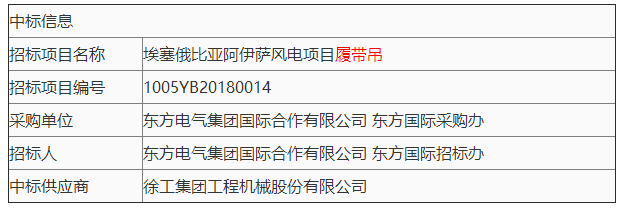 东方 电气发布埃塞俄比亚阿伊萨风电项目履带吊中标公告