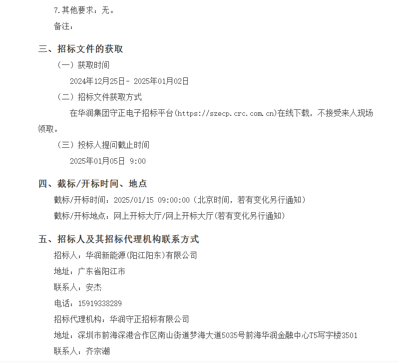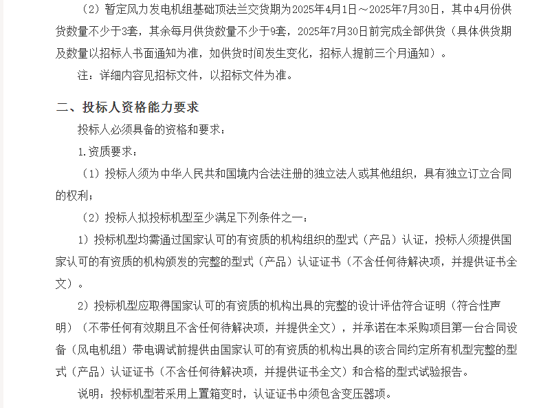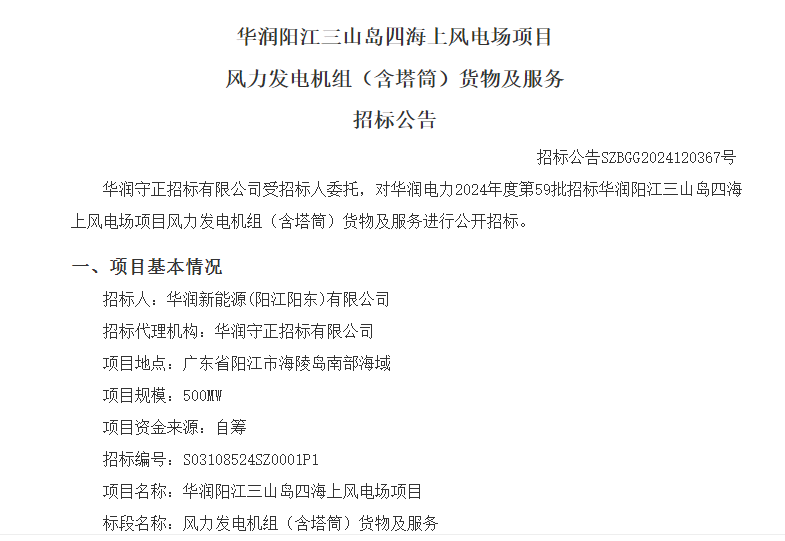 华润阳江三山岛四海上风电场项目 风力发电机组(含塔筒)货物及服务 招标公告