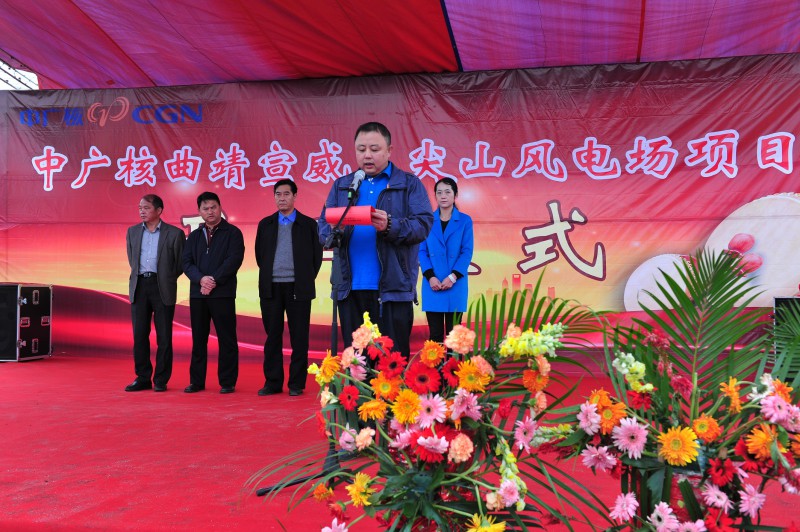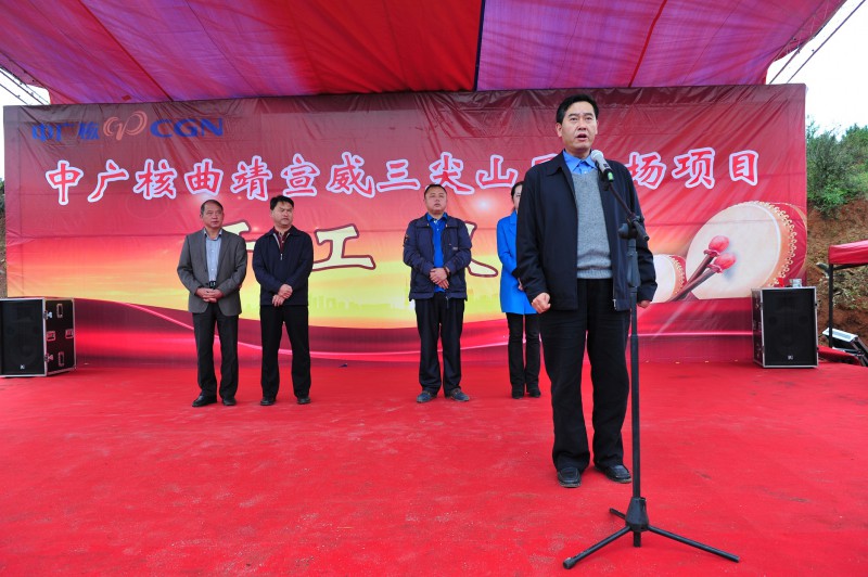 开工仪式上,市委副书记、市长周云锋宣布中广核曲靖宣威三尖山风电项目一期工程开工,副市长李明勇讲话,中广核风力发电有限公司工程建设中心西南区域总监助理郭志成讲话。中广核风力发电有限公司三尖山风电场项目经理严彭杰主持开工仪式。副市长王珍珍、市政协副主席李启信出席开工仪式,宣威市发改局、工信局、环保局、国土局、林业局、招商局、交通局、水务局、宣威供分局、宣威电公司、主要负责人,以及宝山镇、普立乡党政主要领导、分管领导,相关站所及村委会负责人见证开工仪式。