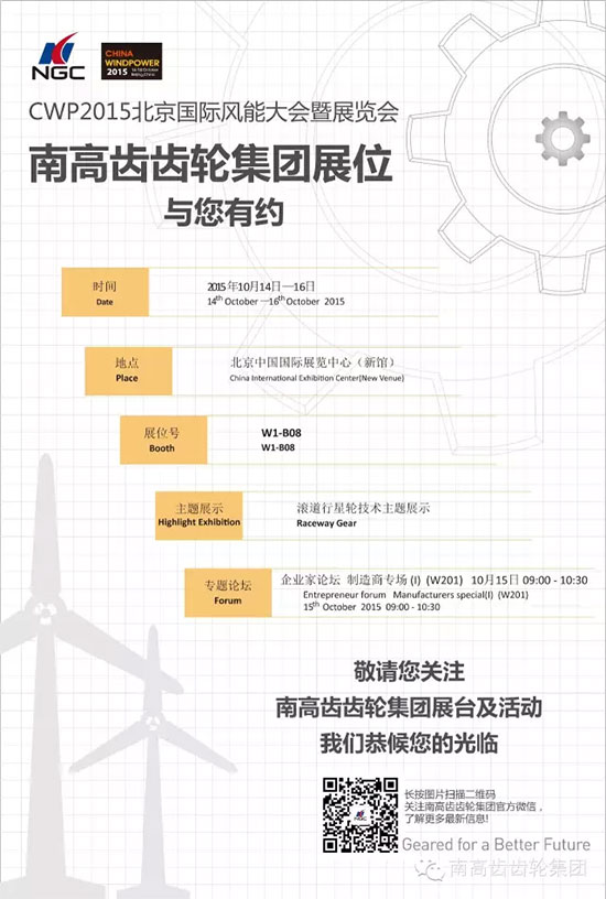 南高齿齿轮集团2015北京国际风能大会暨展览会与您有约
