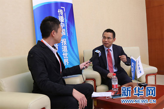 图为 远景能源CEO张雷接受新华网采访