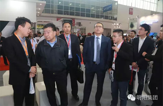 10月14日上午,国家能源局新能源与可再生能源司副司长朱明、中国可再生能源学会理事长石定寰、中国可再生能源学会风能专业委员会秘书长秦海岩等领导到明阳风电展位视察指导。