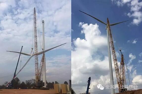 2015年12月25日,泰国EGCO-II期CWF(121-2500-120米柔塔)项目顺利完成首台机组吊装!这是金风科技120米柔塔国际量产项目完成吊装的首台机组。