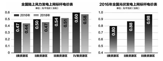 争论一年的陆上风电、光伏标杆上网电价调整终于在2015年最后一刻尘埃落定———陆上风电项目上网标杆电价2016年、2018年一、二、三类资源区分别降低2分钱、3分钱,四类资源区分别降低1分钱、2分钱;2016年光伏发电标杆电价,一、二类资源区分别降低10分钱、7分钱,三类资源区降低2分钱。