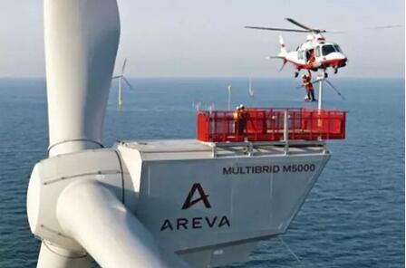 Areva M5000是本次TOP10结果中最老的机型,至少理论上是如此。在90年代末期Areva就有此设想。并且Areva M5000也是本次TOP10结果中为数不多的商业化机型之一 (用于德国北海的Alpha Ventus项目)。去年Areva宣布对M5000升级,叶片从113米提升到136米。升级机型被法国某个海上风电项目采用,立于英吉利海峡。