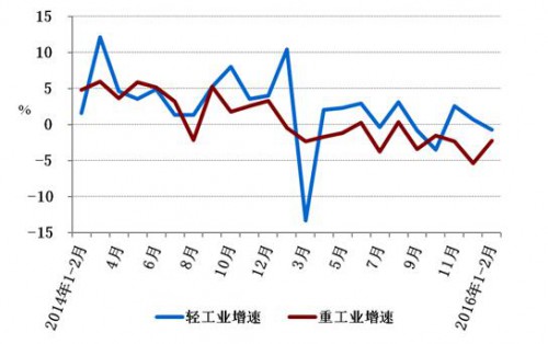 图2: 2014年以来分月轻、重工业用电量增速情况