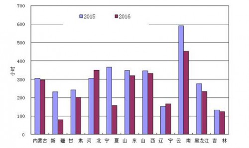 分类型看,1-2月份,全国水电设备平均利用小时445小时,同比增长72小时;水电装机容量超过1000万千瓦的7个省份中,只有青海同比下降50小时,其余省份都有所增加,其中湖南增长289小时,贵州增长121小时,广西增长100小时。全国火电设备平均利用小时656小时,同比下降83小时,降幅比2015年同期扩大31小时;其中北京、河北、江苏、安徽利用小时数接近或超过800小时;与上年同期相比,共有25个省份火电利用小时同比下降,其中,四川、西藏、青海及福建下降超过300小时。全国核电设备平均利用小时1025小时,同比下降68小时。全国风电设备平均利用小时263小时,同比下降39小时。
