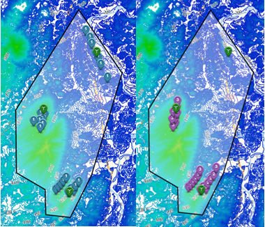 下图是可研报告中提供的机位点坐标(左)与解决方案优化机位点坐标(右)的对比情况。