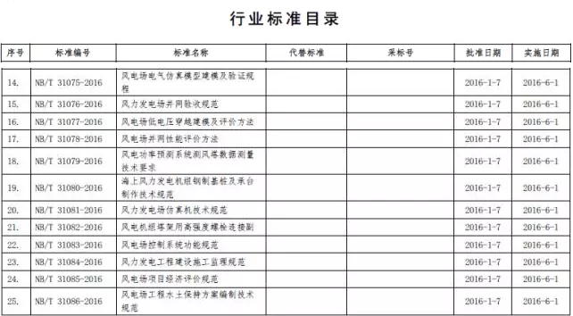 根据国家能源局日前发布公告(2016年第1号),自2016年6月1日起,我国共有以下24项风电行业标准、6项光伏行业标准即将陆续实施。