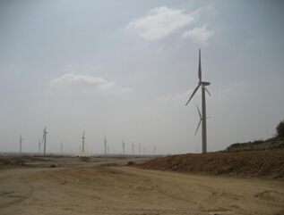 巴基斯坦地处南亚,高温酷热、沙漠戈壁,对风能变流器可靠运行极富挑战。艾默生公司在2011年就与某德国著名风机厂商合作,不仅提供风能变流器产品,而且提供了适应高温严酷环境的一体化解决方案,应用在巴基斯坦沙漠戈壁的高温酷热地区。当时这个项目是巴基斯坦全国第一个商业并网的风电场(附图),截止目前已经稳定运行了近5年,有力地缓解了当地的电力紧张局面,改善了当地电网的能源结构,并实现了良好的经济效益,获得业主和客户的交口称赞。