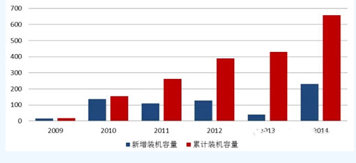 根据我国风电发展目标,2020年我国近海风电目标规模在3000MW,而截至2014年底我国海上风电的总装机量仅有657.88MW,未来发展空间十分巨大。按照2020年装机目标规模进行估算,未来每年我国近海风电的装机量平均将达到390MW左右,其增速规模十分可观。