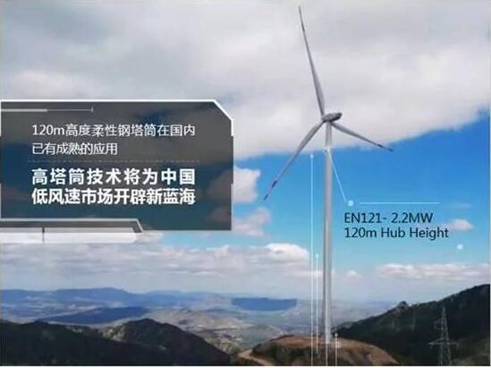 近日,远景能源研发的国内首款120米全钢柔性塔筒EN121-2.2MW机组获得权威认证机构鉴衡认证中心颁发的首个120米高塔筒机组型式A认证证书。