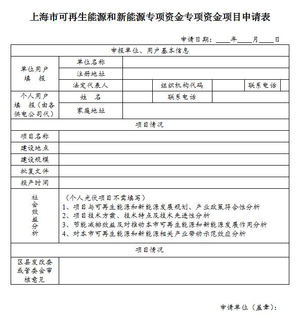 附表:上海市可再生能源和新能源专项资金项目申请表
