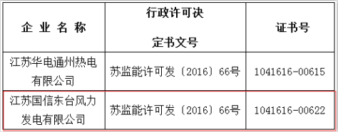 江苏能监办准予1家风电企业电力业务许可证(发电类)变更