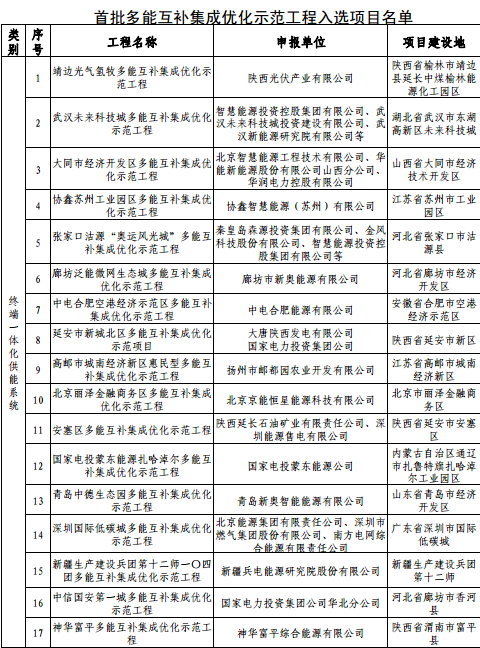 附件:首批多能互补集成优化示范工程入选项目名单