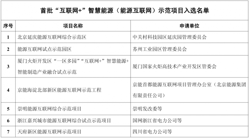 首批“互联网+”智慧能源(能源互联网)示范项目评选结果公示