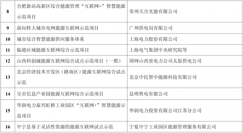 附件:首批“互联网+”智慧能源(能源互联网)示范项目入选名单