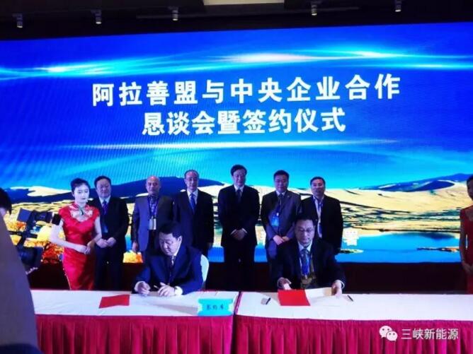 2月27日上午,内蒙古自治区与中央企业合作恳谈会在北京国家会议中心举行。三峡新能源总经理李斌与阿拉善盟盟长冯玉臻就三峡新能源参与阿拉善盟新能源基地建设签订了战略合作框架协议。
