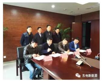 如东县能源局张俊局长主持本次会议,如东县能源局周华副局长代表东电新能源公司在协议上签字。