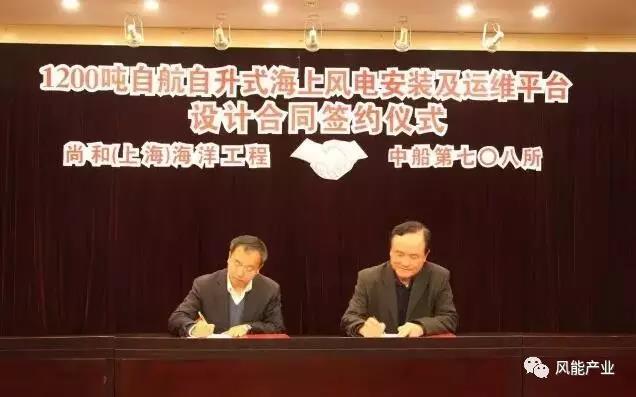 3月7日下午,尚和(上海)海洋工程设备有限公司与中船七〇八所签订了“1200吨自航自升式海上风电安装及运维平台”设计合同,七〇八所党委书记卢霖致欢迎辞,尚和海工总经理郑文俊和七〇八所副所长李小平分别代表双方签约。所市场总监韩明、副总工程师费龙、经营计划部主任吴伟俊以及海工部设计项目组相关同志参加仪式。