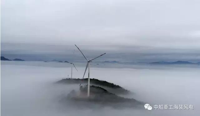 犁牛坪风场位于广东省韶关市南雄大庾岭山脉,这里雨后常常云雾缭绕,空中云雾时而奔腾起伏、时而舒展缓落,让人犹如置身仙境。静静伫立其中的25台海装风电低风速风机不仅成为当地旅游观光景点,还为当地注入了源源不断的清洁能源。