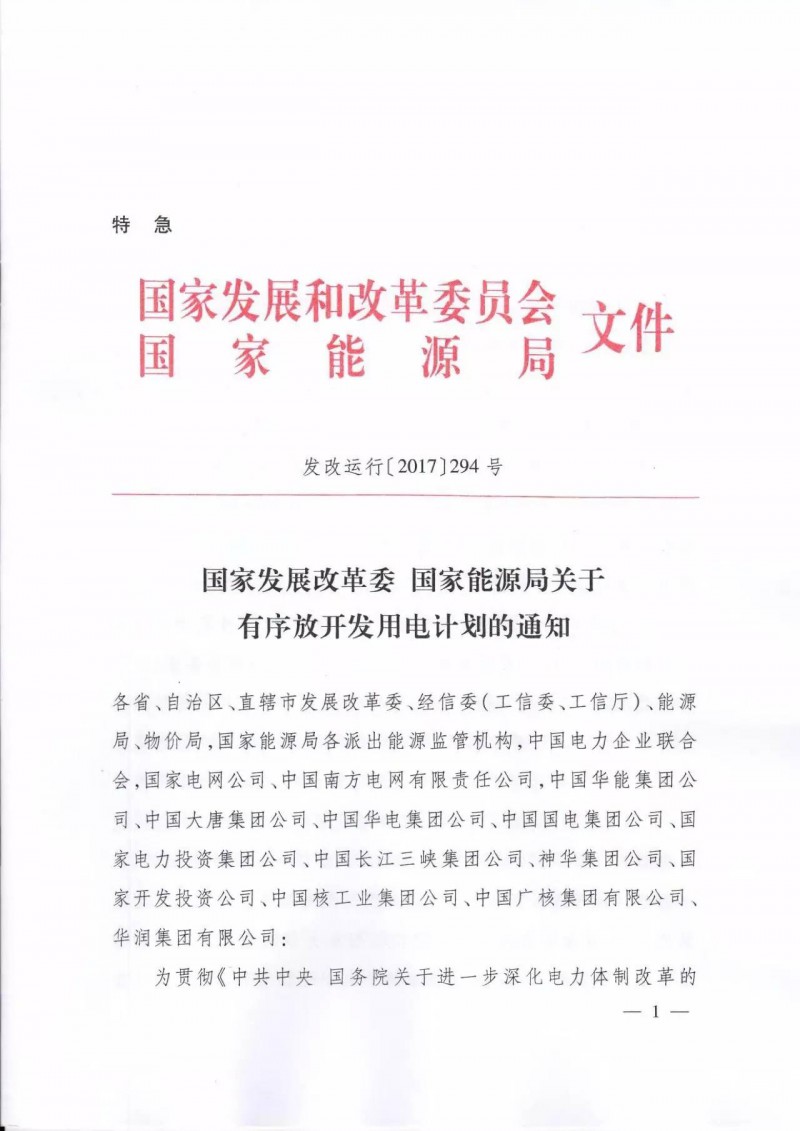 3月29日,国家发改委和国家能源局印发《关于有序放开发用电计划的通知》。通知指出,国家规划内的既有大型水电、风电、太阳能等清洁能源发电通过优先发电计划予以重点保障。以下为文件原文: