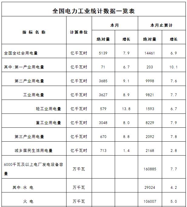 3月份,全社会用电量5139亿千瓦时,同比增长7.9%。