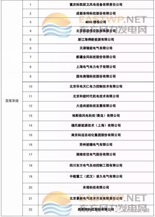 2017年风电控制系统名录大全(主控系统、变流器、变桨系统
